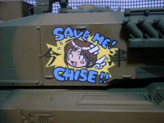 というわけで(どういうわけやねん?)、自分にはそれだけの技術を持ち合わせていないので、モデラーであり同じく「最終兵器彼女」ファンでもあるPLEさんにお願いして、1/24RCバトルタンク[陸上自衛隊90式戦車]に、マーキングをしていただきました。